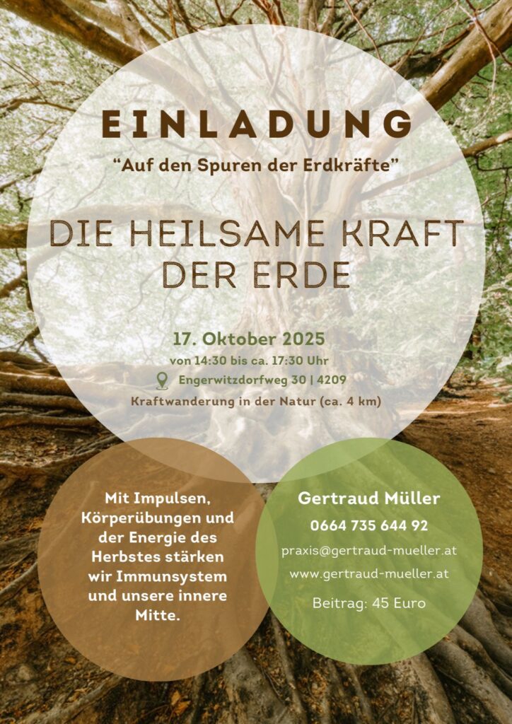 Neben Behandlungen in meiner Praxis, kann mein Angebot auch gerne als Vortrag, Seminar, Workshop, etc. in kleinen bzw. größeren Gruppen für Firmen, Vereine, Freundeskreise, Familien, Pfarren, etc. individuell abgestimmt in Anspruch genommen werden. Darüber hinaus begleite ich dich gerne bei individuellen Pilgerwanderungen und Spaziergängen zum eigenen Ich.